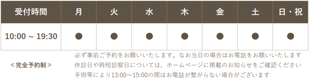 診察日および臨時休診等のお知らせ