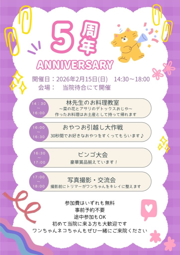 おかげさまで、当院はこの2月で開院5周年を迎えることとなりました。